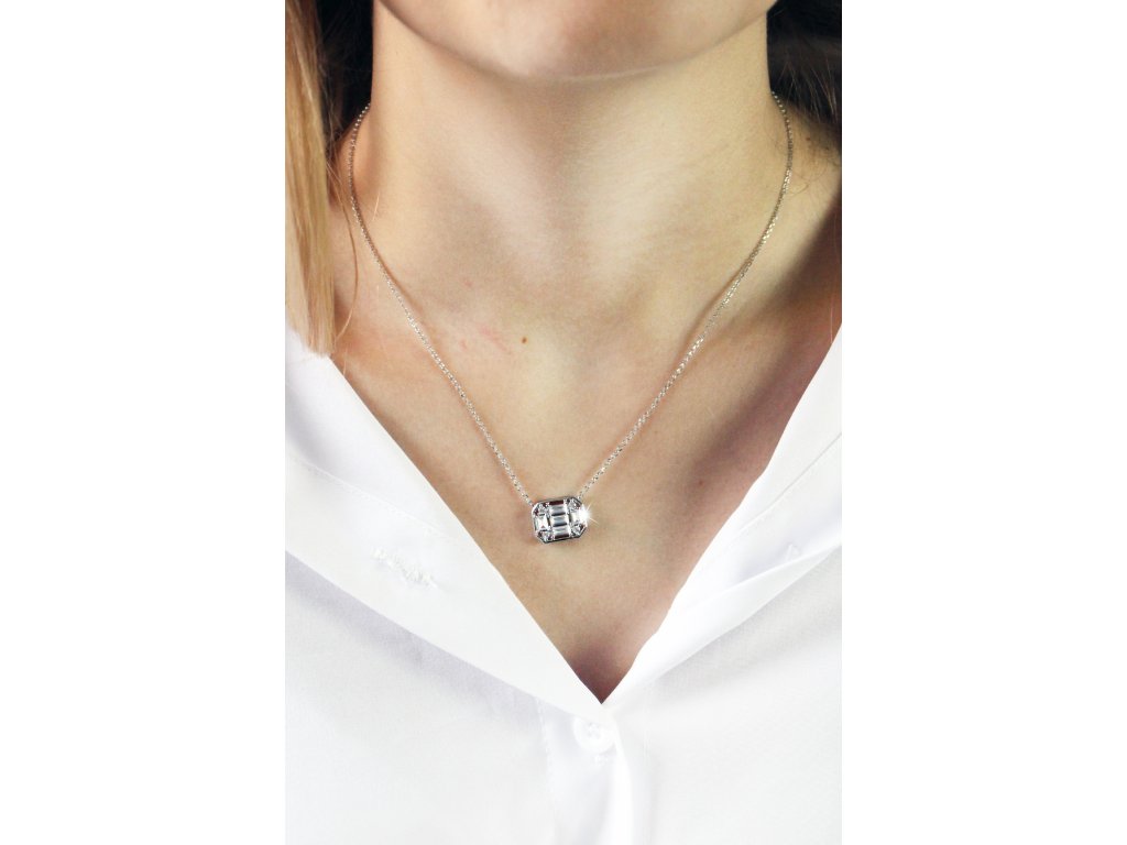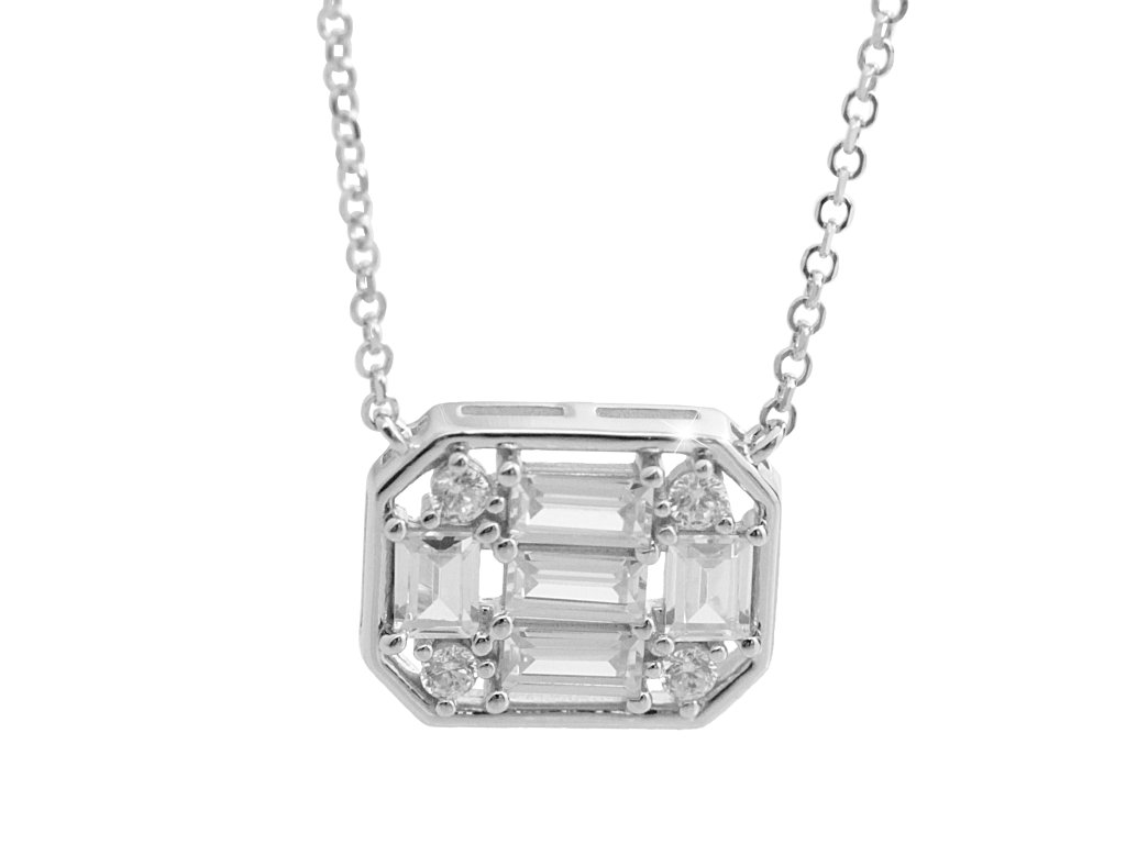 Stříbrný náhrdelník zkosený obdélník s Kubickými zirkony Crystal (Stříbro 925/1000)