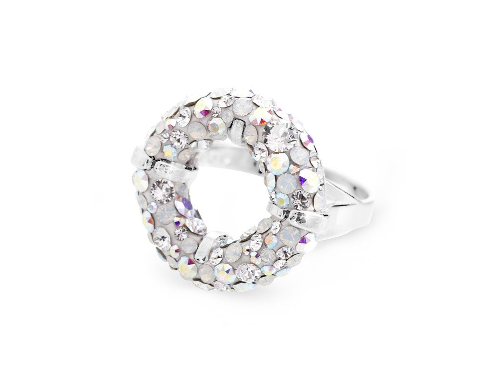 Stříbrný nápaditý prsten kruh s krystaly Swarovski AB mix (Stříbro 925/1000)