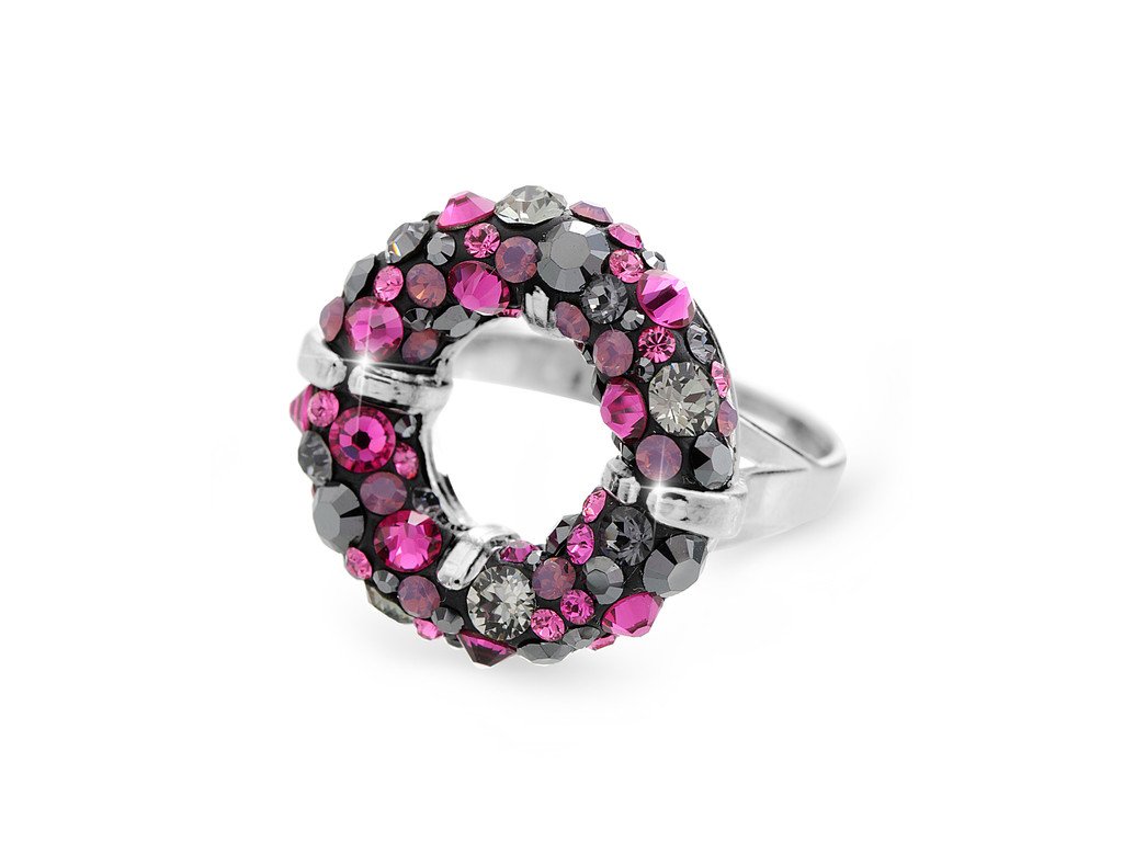 Stříbrný nápaditý prsten kruh s krystaly Swarovski Fuchsia (Stříbro 925/1000)