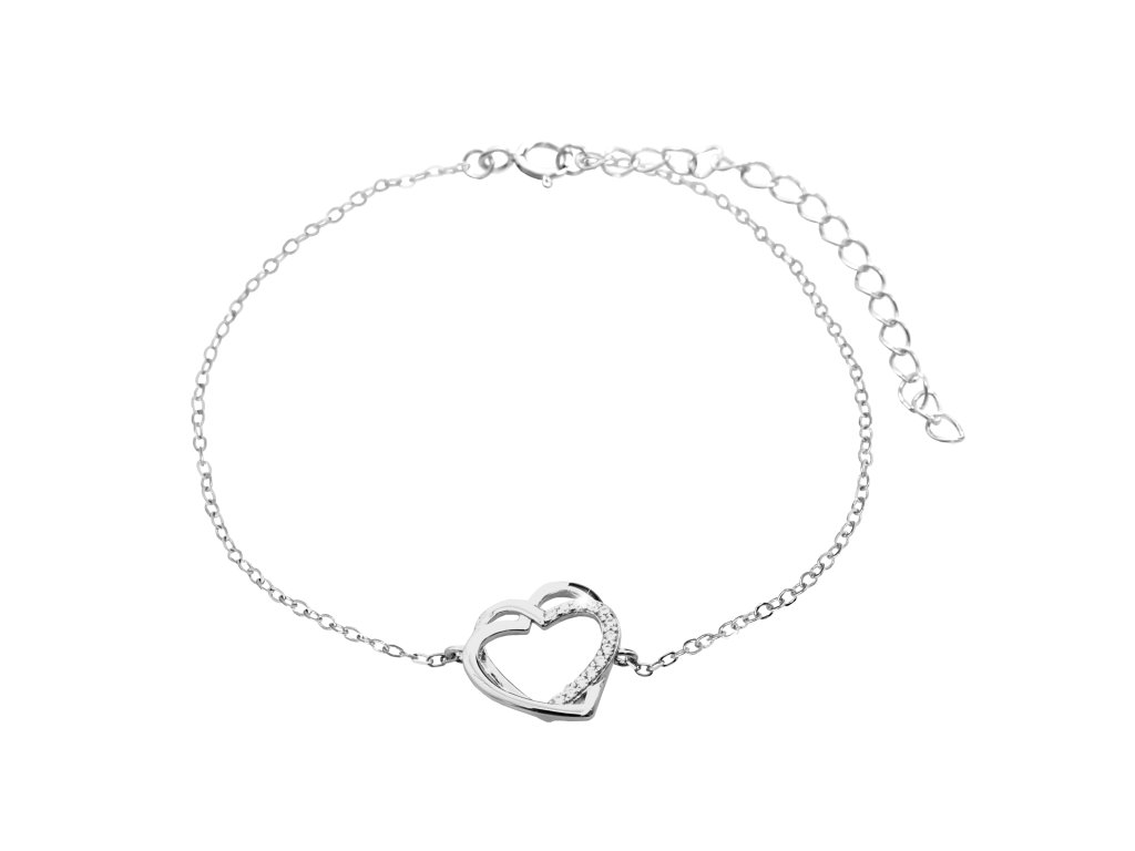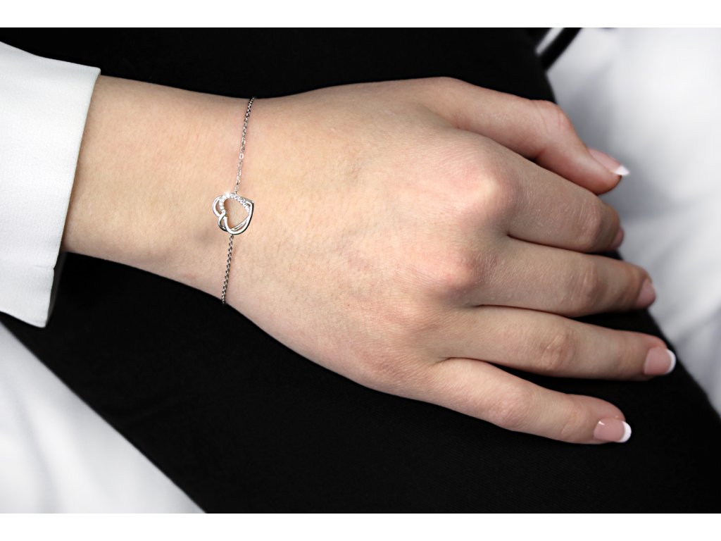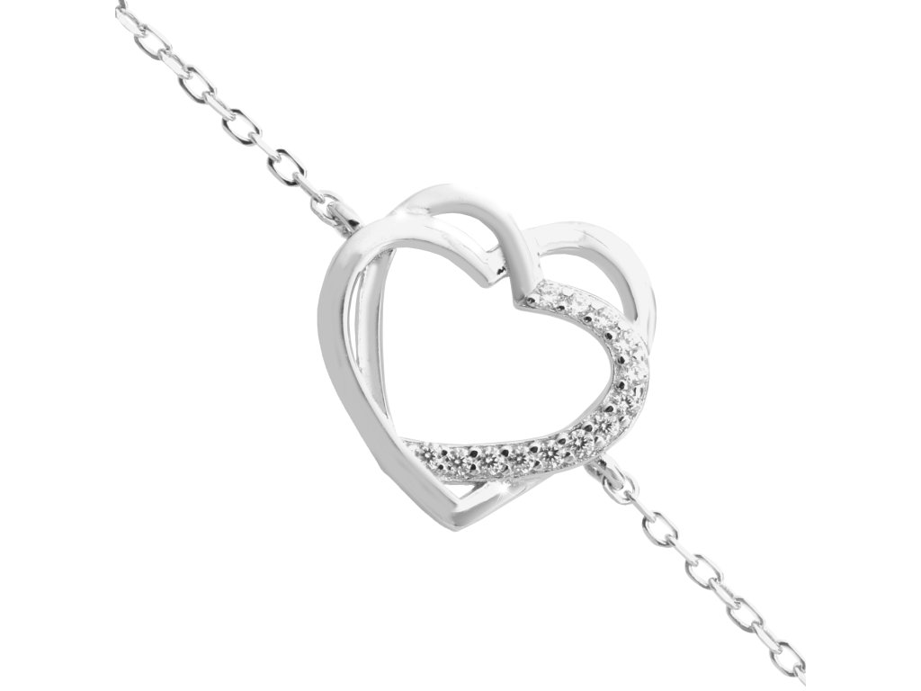 Stříbrný náramek dvě propojená srdce s Kubickými zirkony Crystal (Stříbro 925/1000)