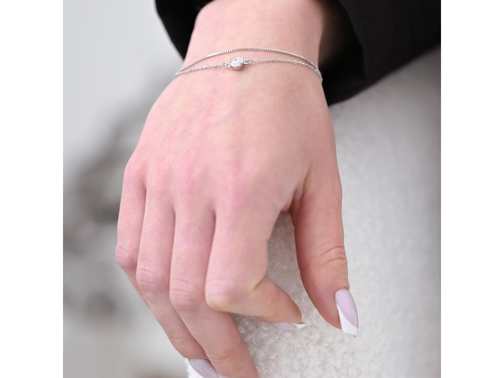 Stříbrný náramek s dvojitým řetízkem je ideální volbou pro ty, kteří chtějí vyniknout. Jeho moderní design a zářivý zirkon dodávají šperku jedinečný vzhled.