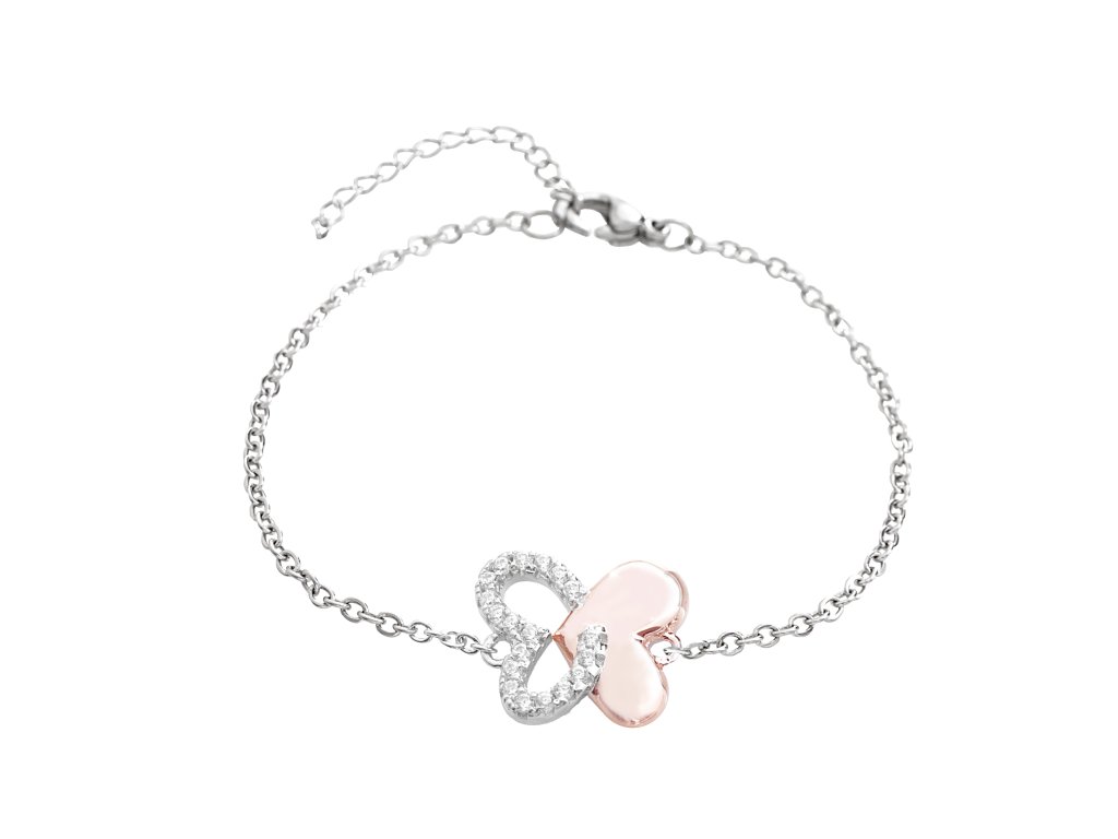 Stříbrný náramek dvoubarevný motýl ozdobený Kubickými zirkony Crystal (Stříbro 925/1000)
