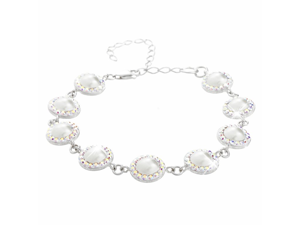 Stříbrný náramek perlová mugle Swarovski s obtahem White AB (Stříbro 925/1000)