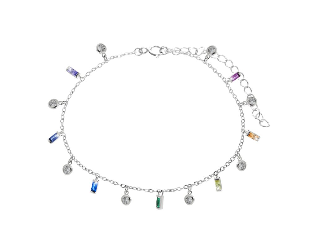 Stříbrný náramek s barevnými ověsy s Kubickými zirkony Multi (Stříbro 925/1000)
