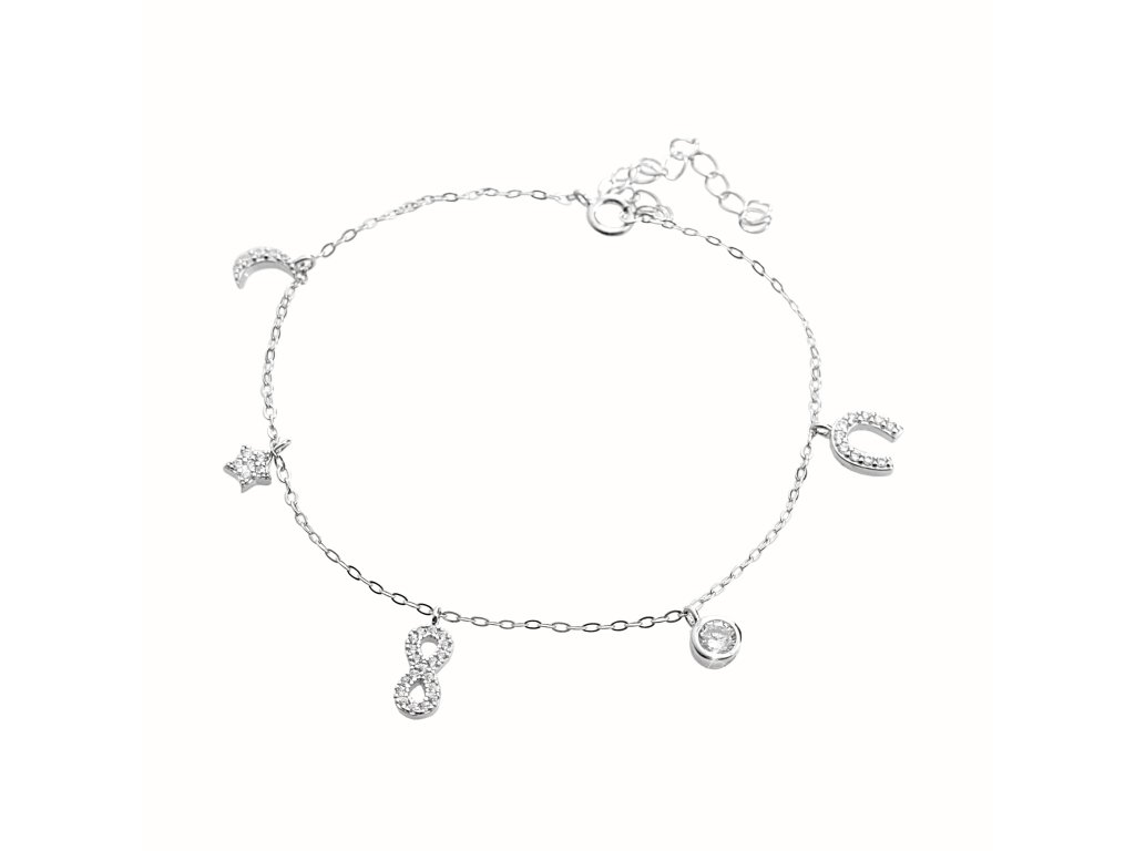 Stříbrný náramek s několika ověsy a s krystaly Swarovski Crystal (Stříbro 925/1000)