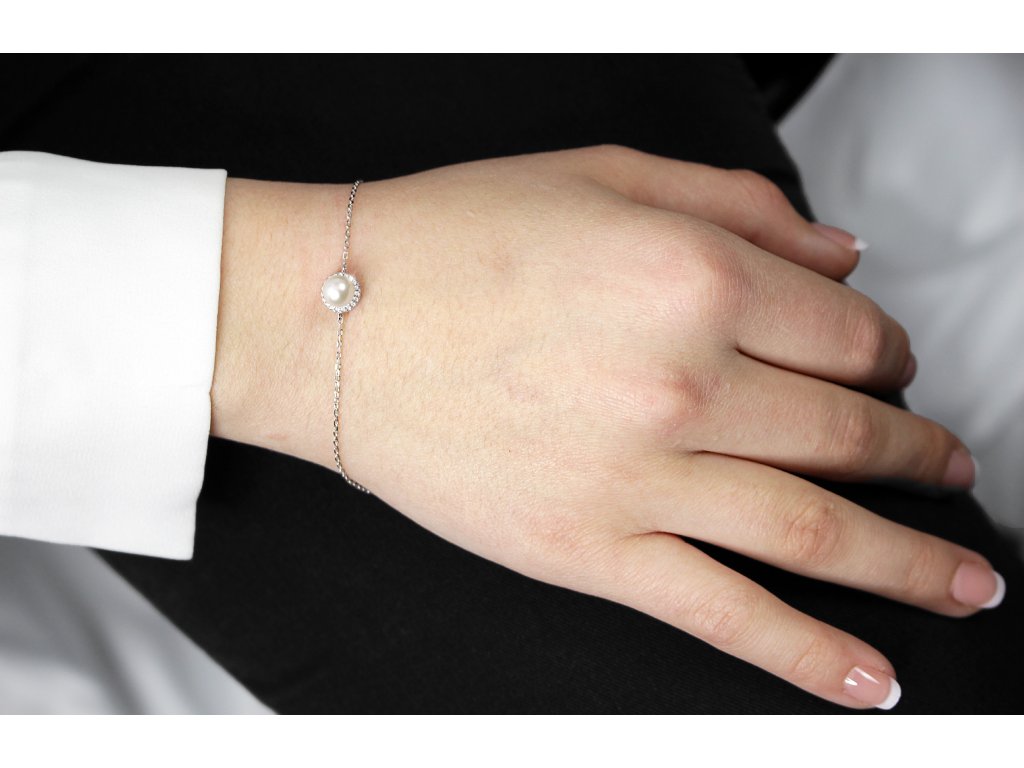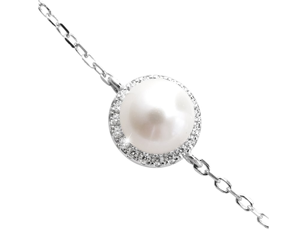 Stříbrný náramek s říční perlou a obvodem krystalů Swarovski Crystal (Stříbro 925/1000)