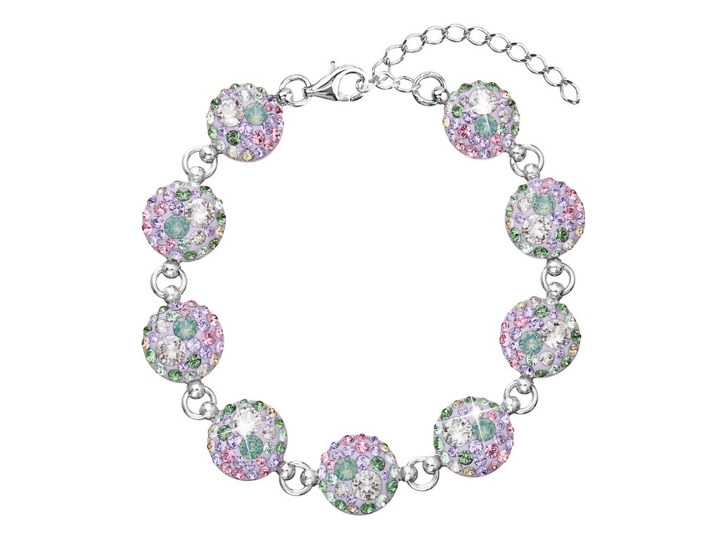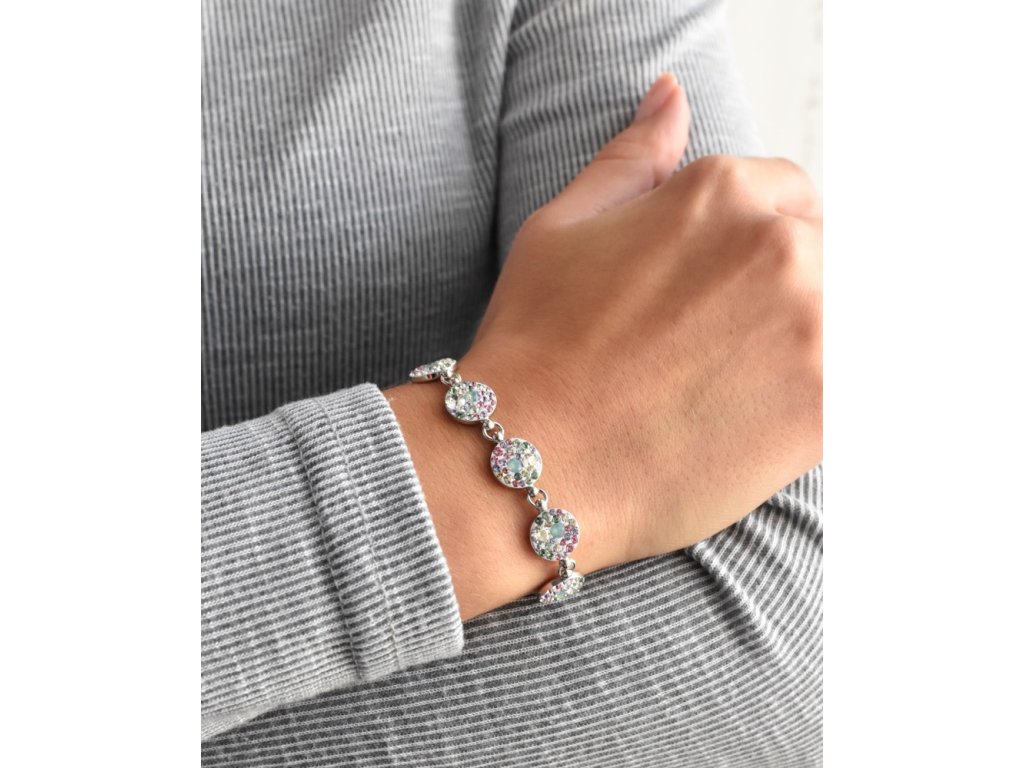 Stříbrný náramek se Swarovski krystaly mix barev 33048.3 sakura