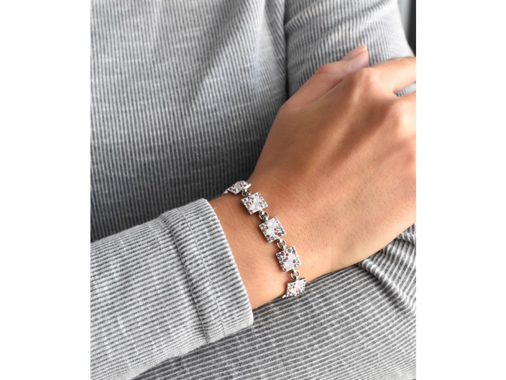 Zaujměte originálním a bohatě zdobeným náramkem se Swarovski krystaly, který nádherně dozdobí vaše zápěstí!Stříbrný růžový náramek 33047.3 je vyroben ze stříbra ryzosti 925/1000, jehož povrch byl ošetřen rhodiem. Rhodium šperk ochrání proti zčernání, zežloutnutí i poškrábání. Náramek je složen z několika stříbrných čtverečků, které jsou bohatě osázeny Swarovski krystaly v různých barvách. Jelikož náramek neobsahuje přídavek niklu, mohou jej bez obav z alergické reakce nosit i alergici.