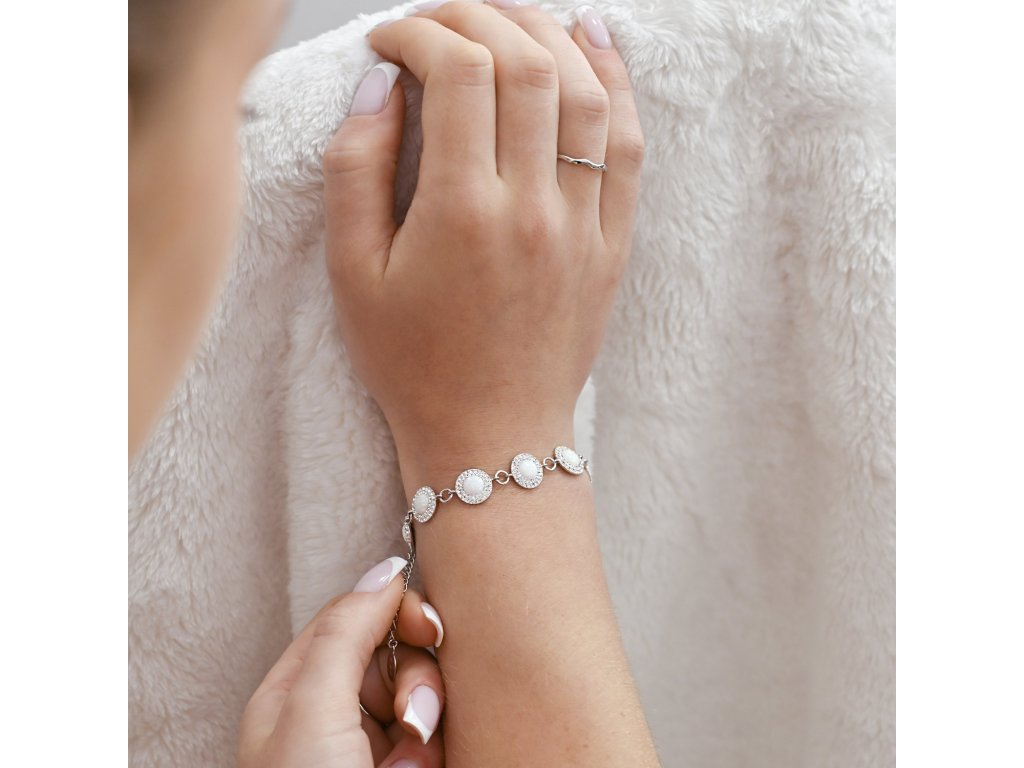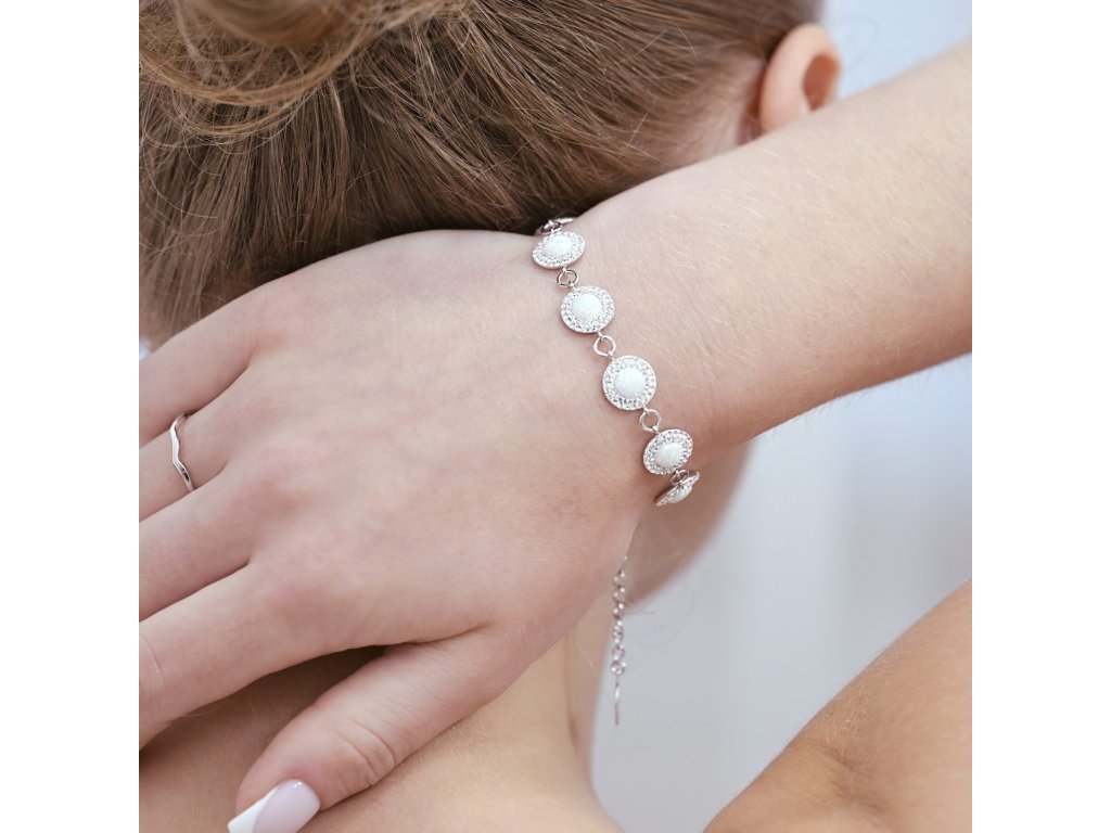 Parametry stříbrného náramku se syntetickým opálem a krystaly Preciosa bílý 33105.1