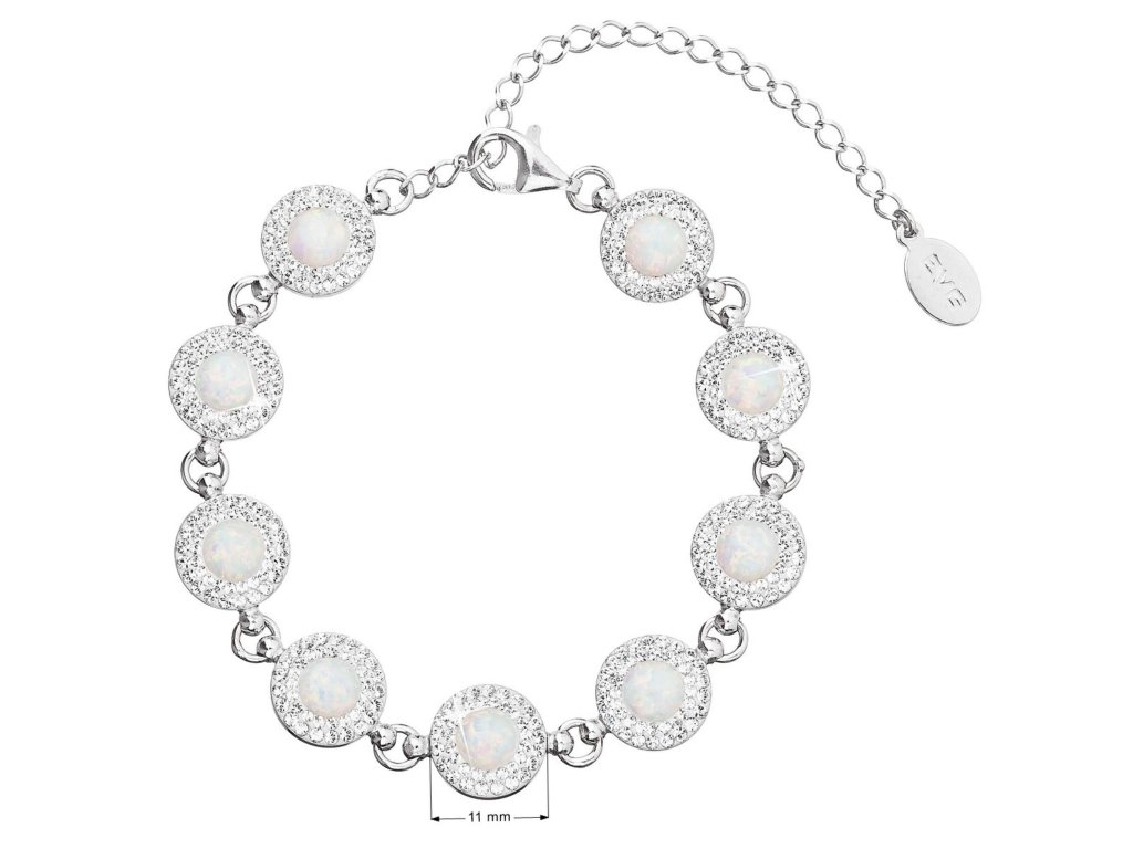 Stříbrný náramek se syntetickým opálem a krystaly Preciosa bílý 33105.1