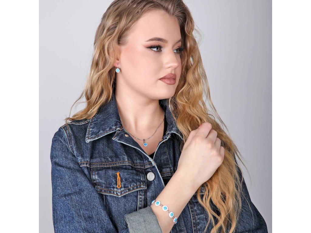 Parametry stříbrného náramku se syntetickým opálem a krystaly Preciosa modrý 33105.1