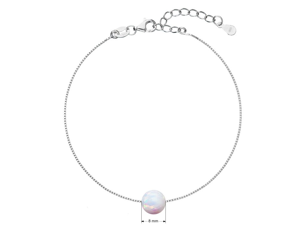 Parametry stříbrného náramku se syntetickým opálem bílý kulatý 13019.1