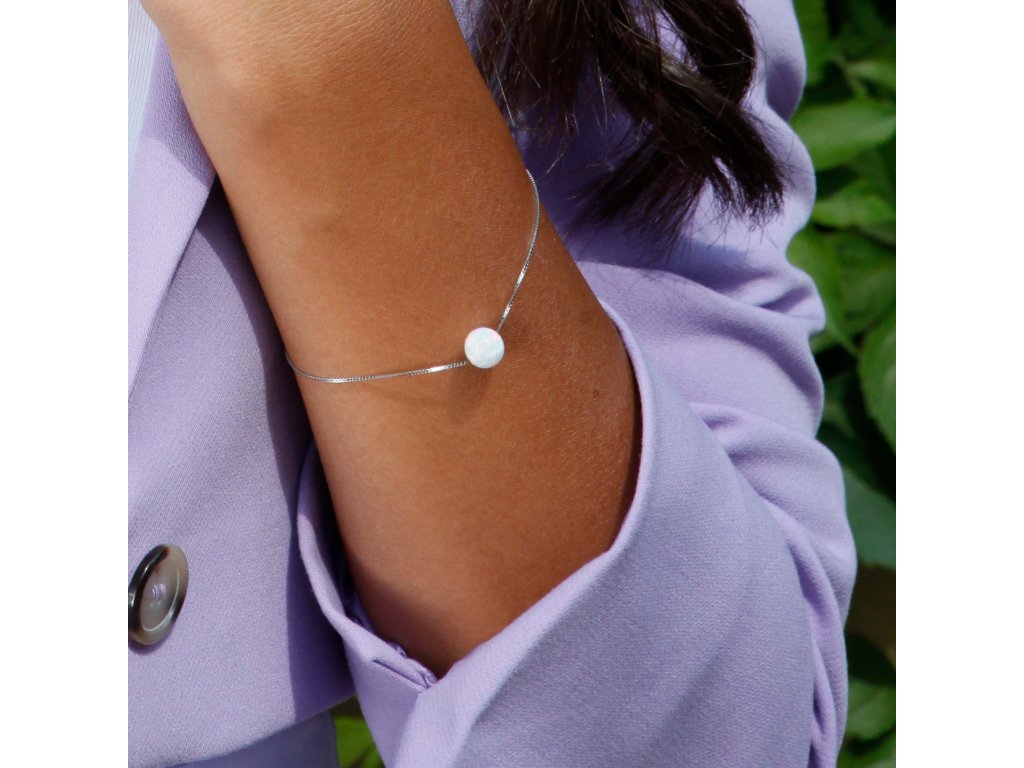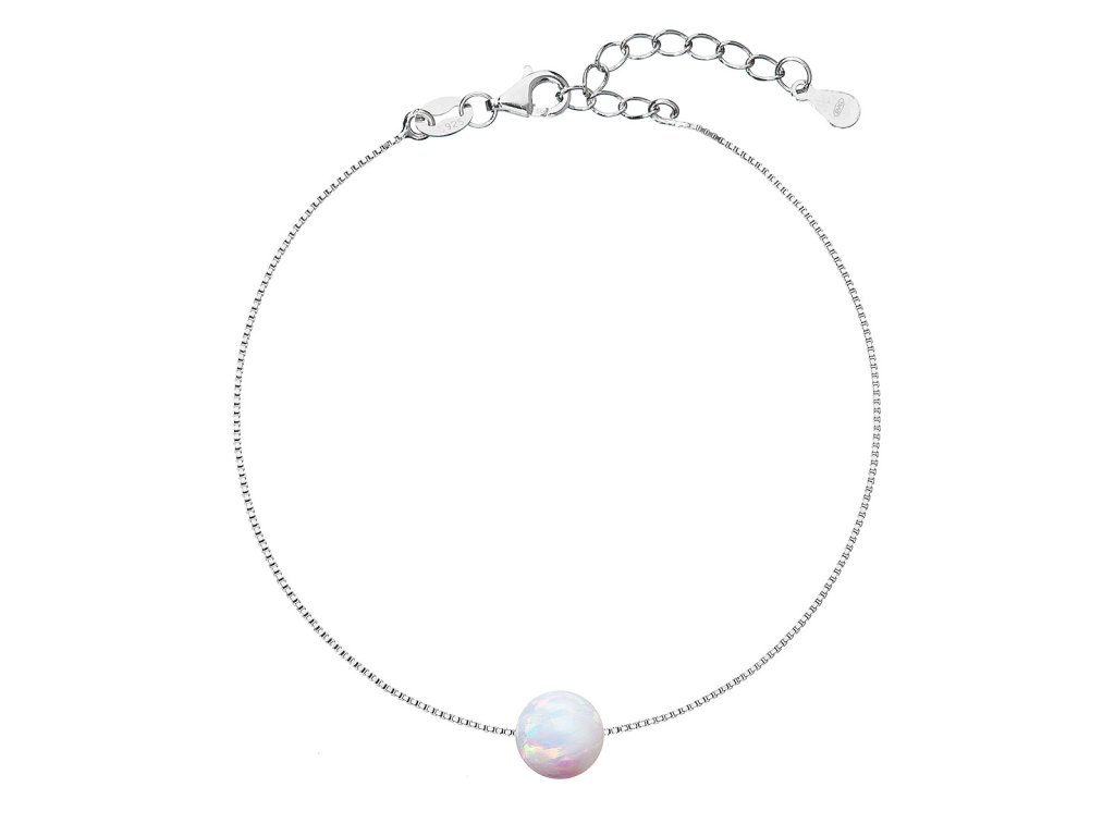 Stříbrný náramek se syntetickým opálem bílý kulatý 13019.1