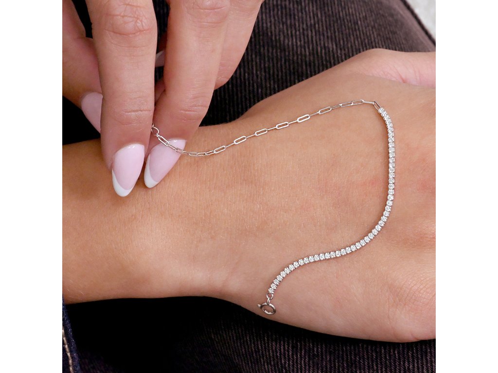 Stříbrný náramek se zirkony a řetízkem 13103.1