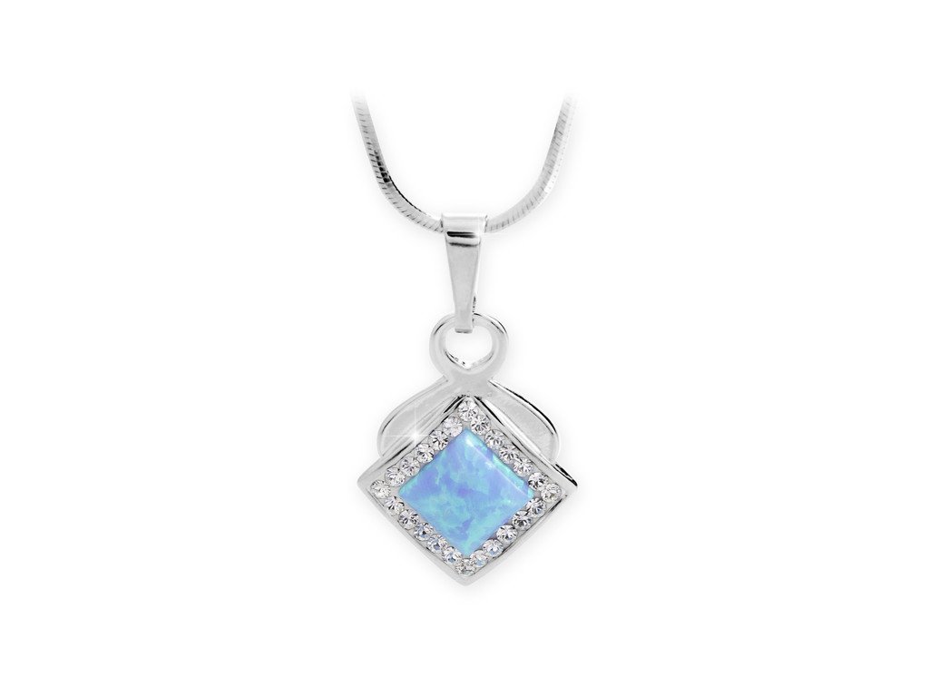 Stříbrný okrasný náhrdelník s modrým čtvercovým opálem a krystaly Swarovski Crystal (Stříbro 925/1000)