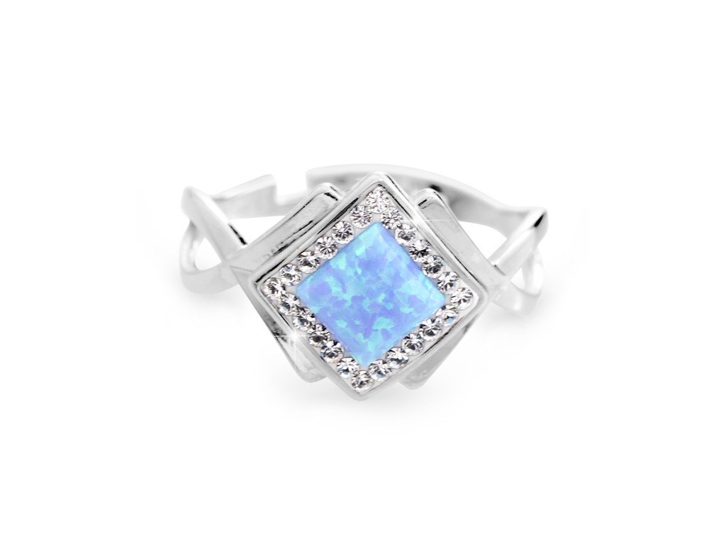 Stříbrný okrasný prsten s modrým čtvercovým opálem a krystaly Swarovski Crystal (Stříbro 925/1000)