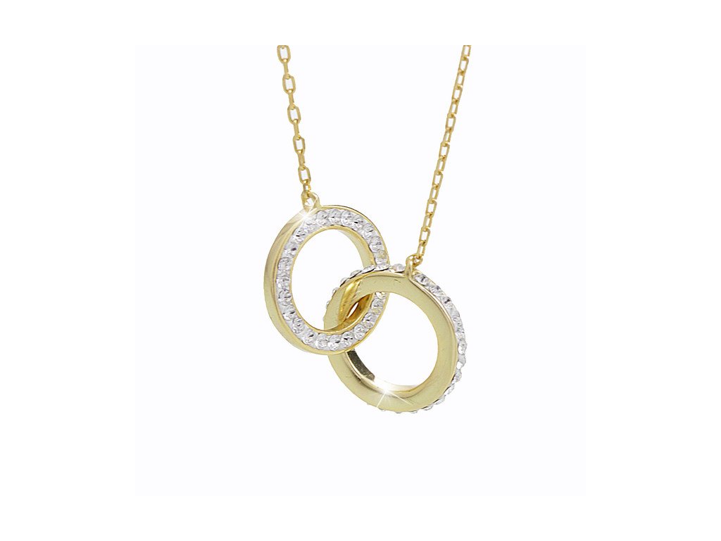Stříbrný pozlacený náhrdelník dva propojené kruhy s krystaly Swarovski po obvodu Crystal (Stříbro 925/1000)