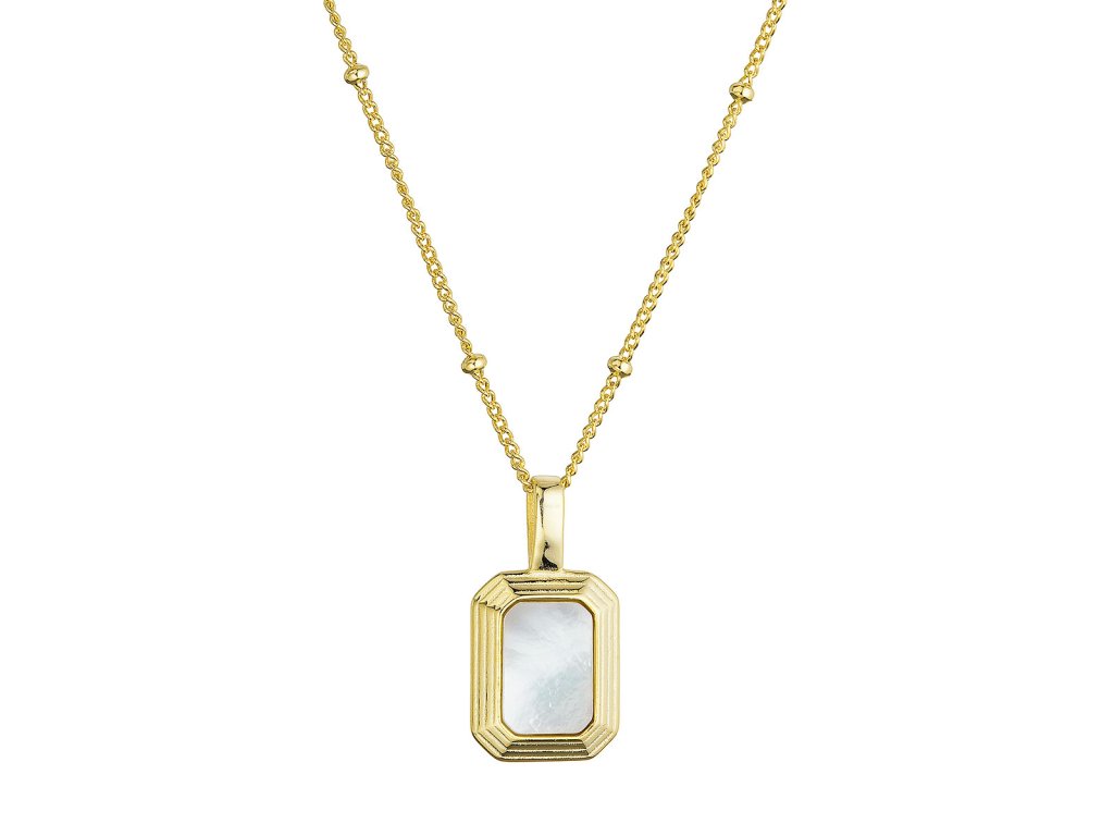 Pozlacený stříbrný náhrdelník se syntetickou perletí a černým achátem nabízí jedinečný oboustranný design, který vám umožní měnit vzhled šperku podle nálady či příležitosti. Na jedné straně se nachází nádherná syntetická bílá perleť, která dodává šperku jemný lesk a sofistikovanost, zatímco druhá strana ukrývá fascinující syntetický černý achát, jenž přináší tajemnou a elegantní eleganci.