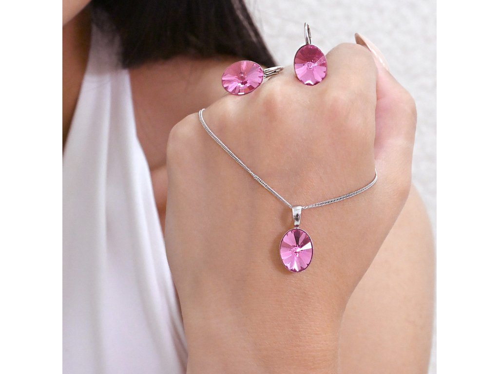 Půvabná v jakékoli situaci! Noste oválný přívěsek s růžovým Swarovski krystalem a okouzlete své okolí.