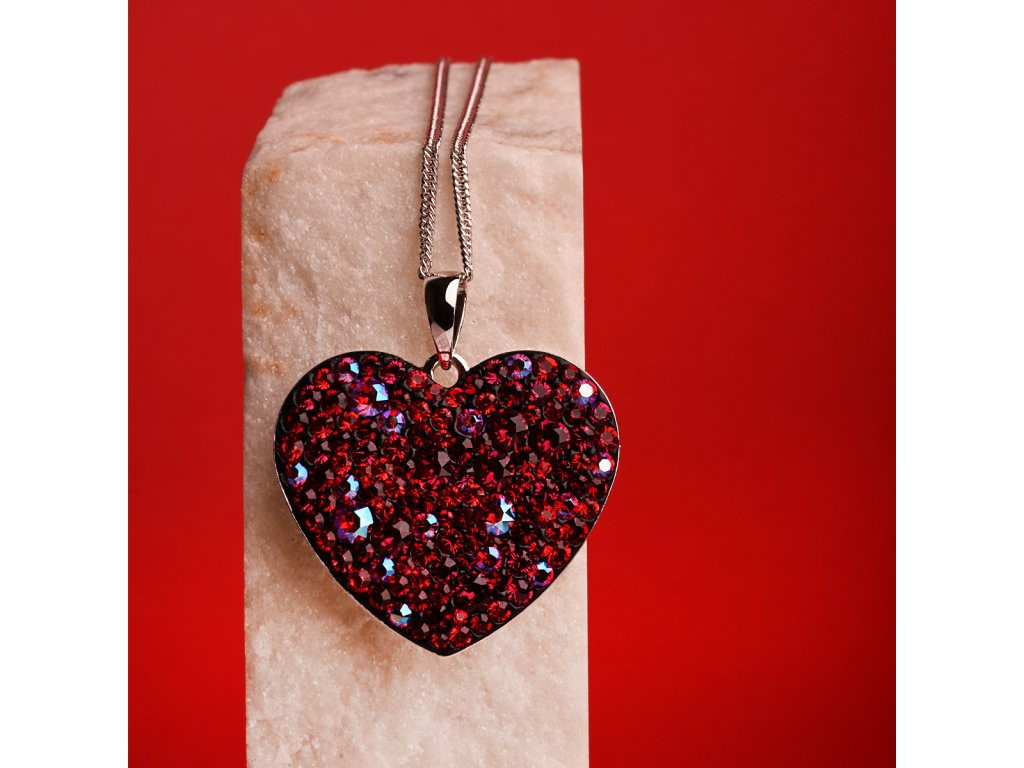 Srdíčko je osázeno Swarovski krystaly v červené barvě.