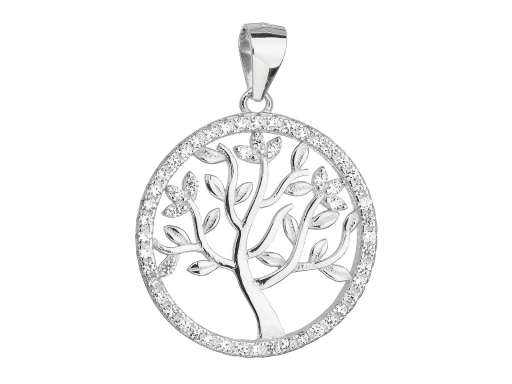 Stříbrný přívěsek se zirkony v bílé barvě strom života 14001.1