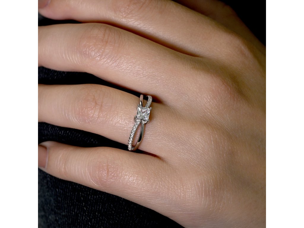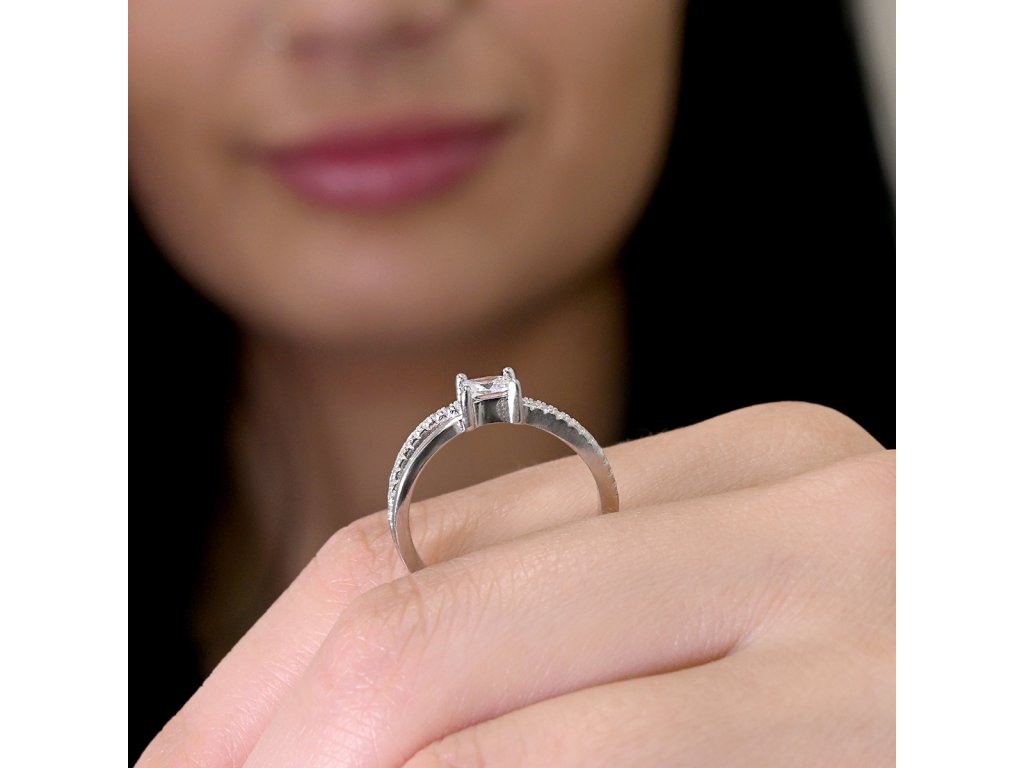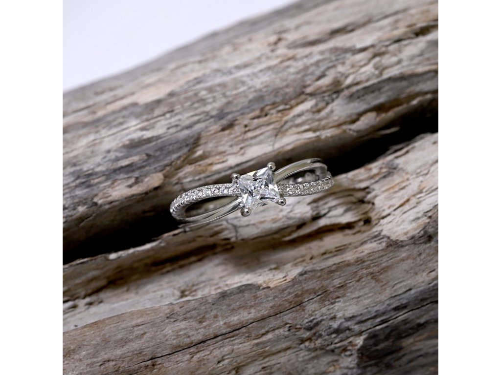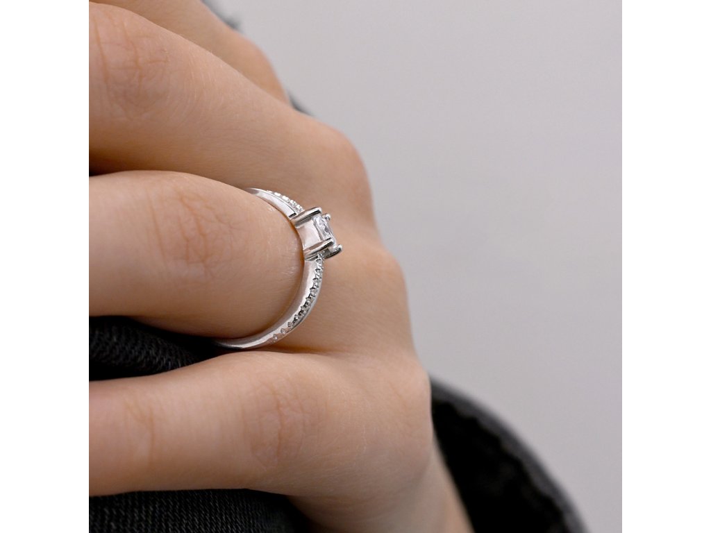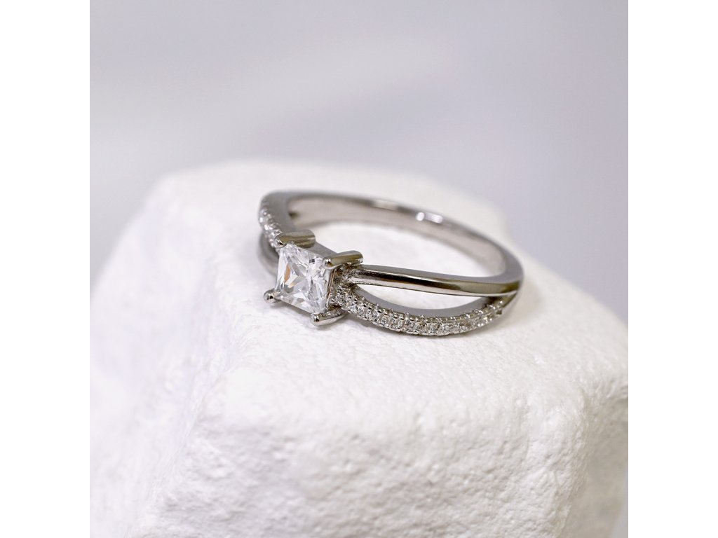 Stříbrný prsten čtvercový bílý zirkon 15016.1