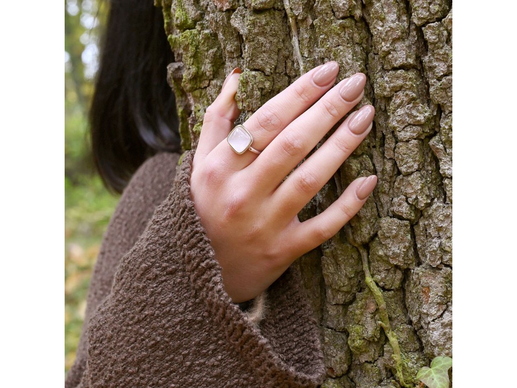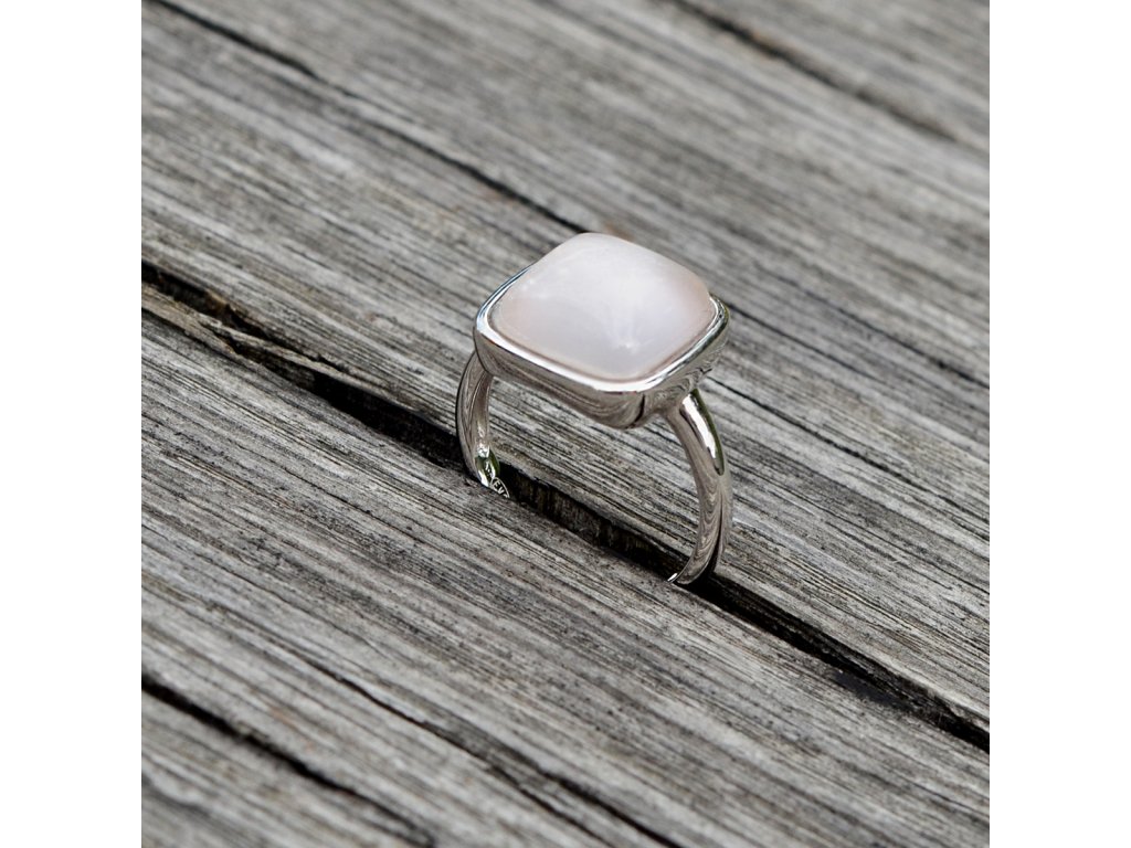 Prsten je vyroben z ryzího stříbra 925/1000 s povrchovou úpravou rhodiem, která zajišťuje mimořádný lesk a ochranu před oxidací. Design tvoří jemný stříbrný čtvereček, který je vyplněn pravým růženínem v něžně růžové barvě. Vytváří jedinečnou choreografii světla a stínu - vnitřní harmonii a sílu.