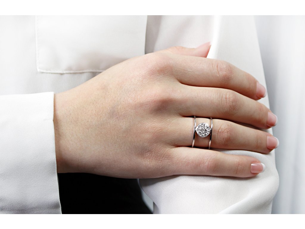 Stříbrný prsten dva kroužky s kulatým lůžkem a krystaly Swarovski Golden Shadow (Stříbro 925/1000)