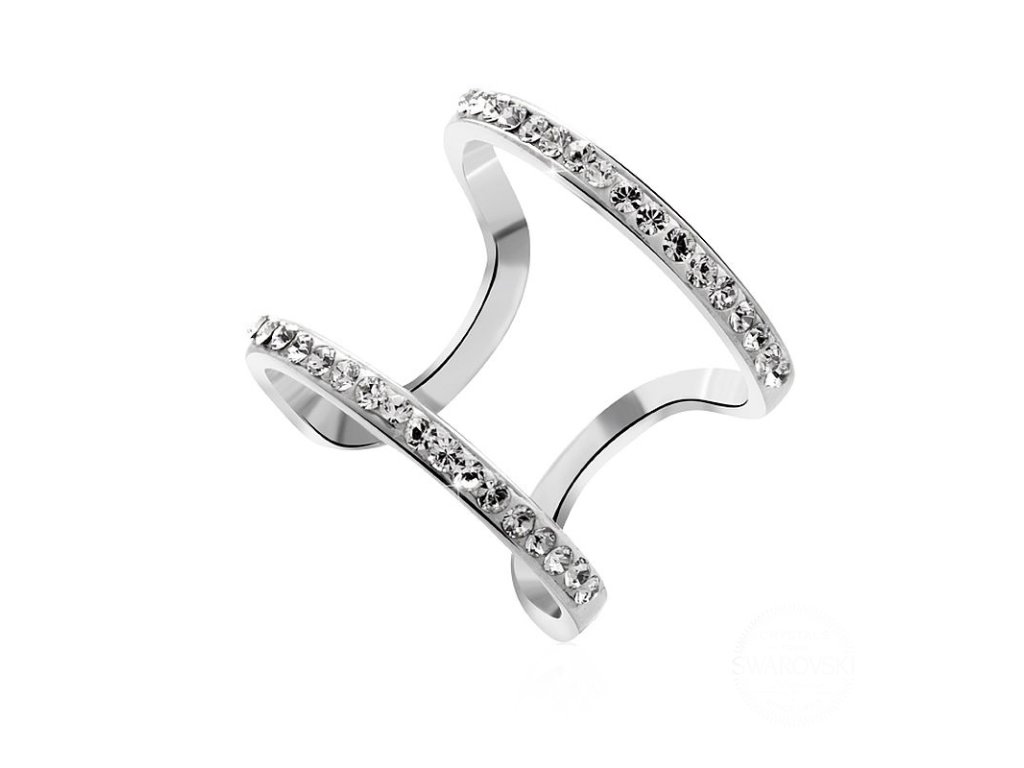 Stříbrný prsten dva kruhy oba osázené krystaly Swarovski Crystal (Stříbro 925/1000)