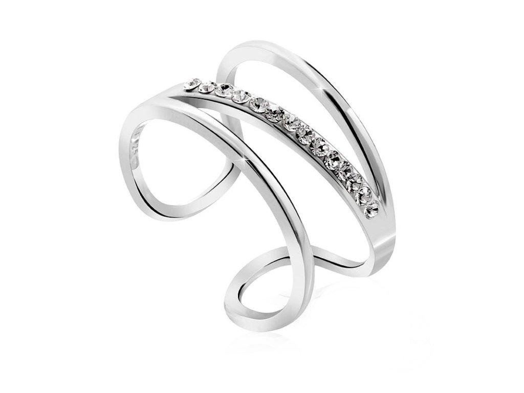 Stříbrný prsten dva proužky v prostřední části šikmo spojený s krystaly Swarovski Crystal (Stříbro 925/1000)