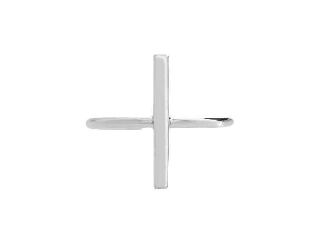 Stříbrný prsten jednoduchý kovový kříž bez krystalů (Stříbro 925/1000)