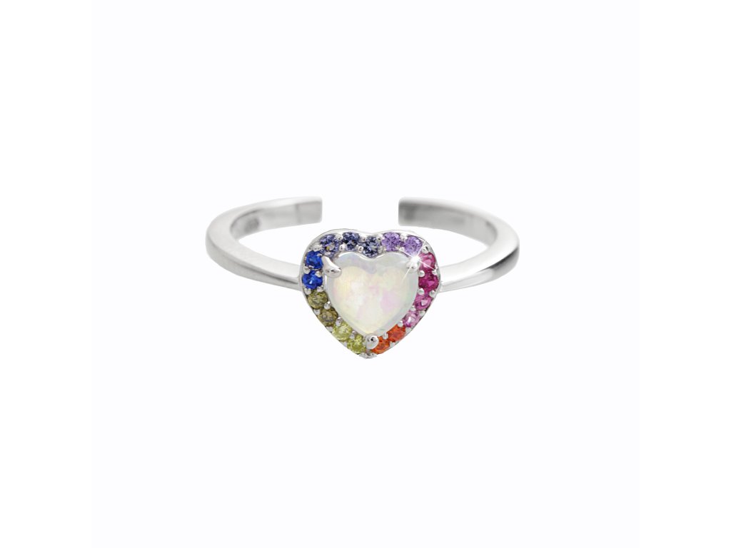 Stříbrný prsten kulatý s opálem a Kubickými zirkony po obvodu Multi (Stříbro 925/1000)