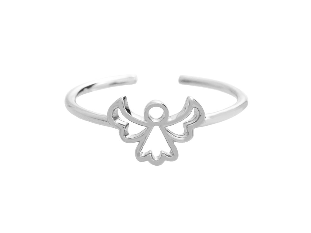 Stříbrný prsten mini obvodový anděl kovový bez krystalů (Stříbro 925/1000)
