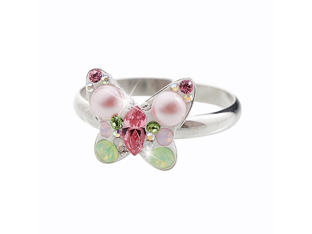Stříbrný prsten motýl a krystaly Swarovski Multi (Stříbro 925/1000)