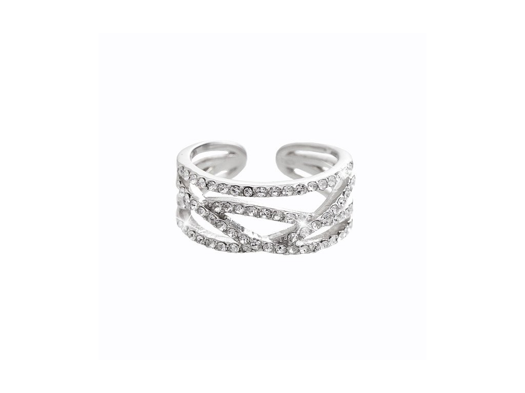 Stříbrný prsten několik různých propletených vlnek s krystaly Swarovski Crystal (Stříbro 925/1000)