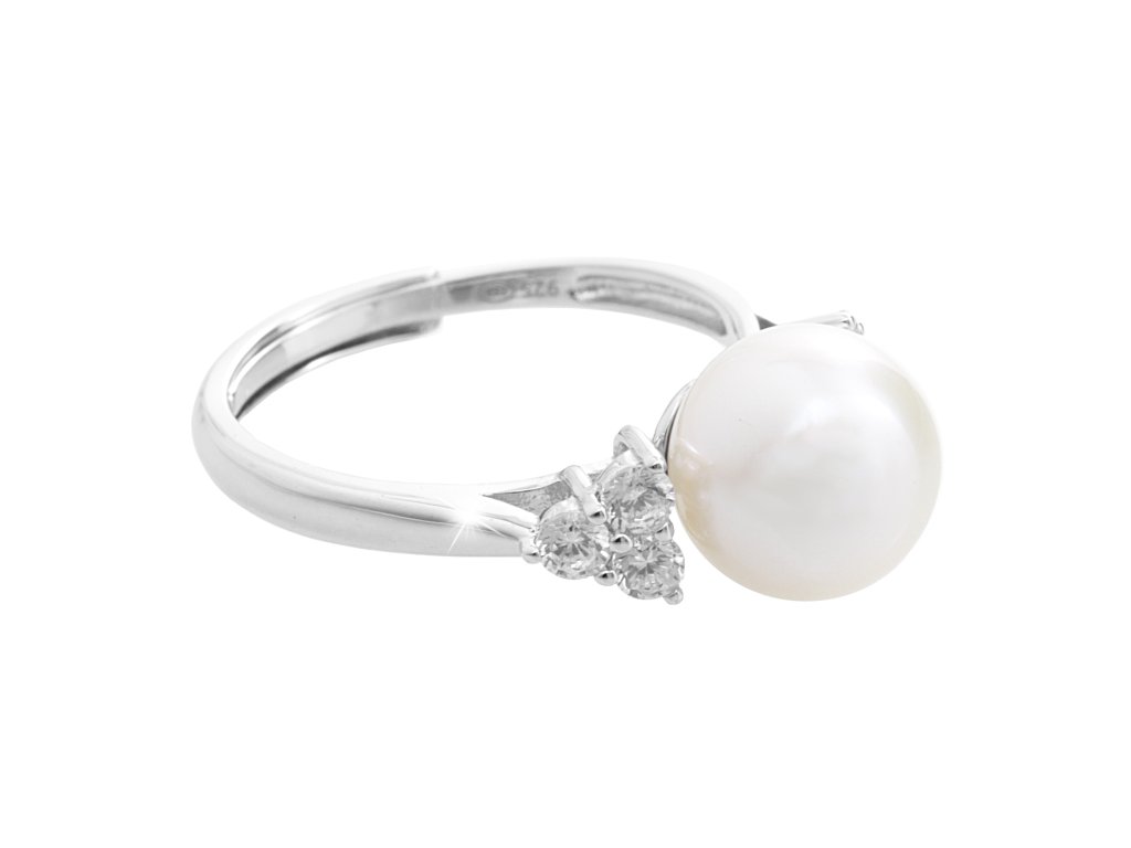 Stříbrný prsten říční perla a tři krystaly Swarovski Crystal (Stříbro 925/1000)