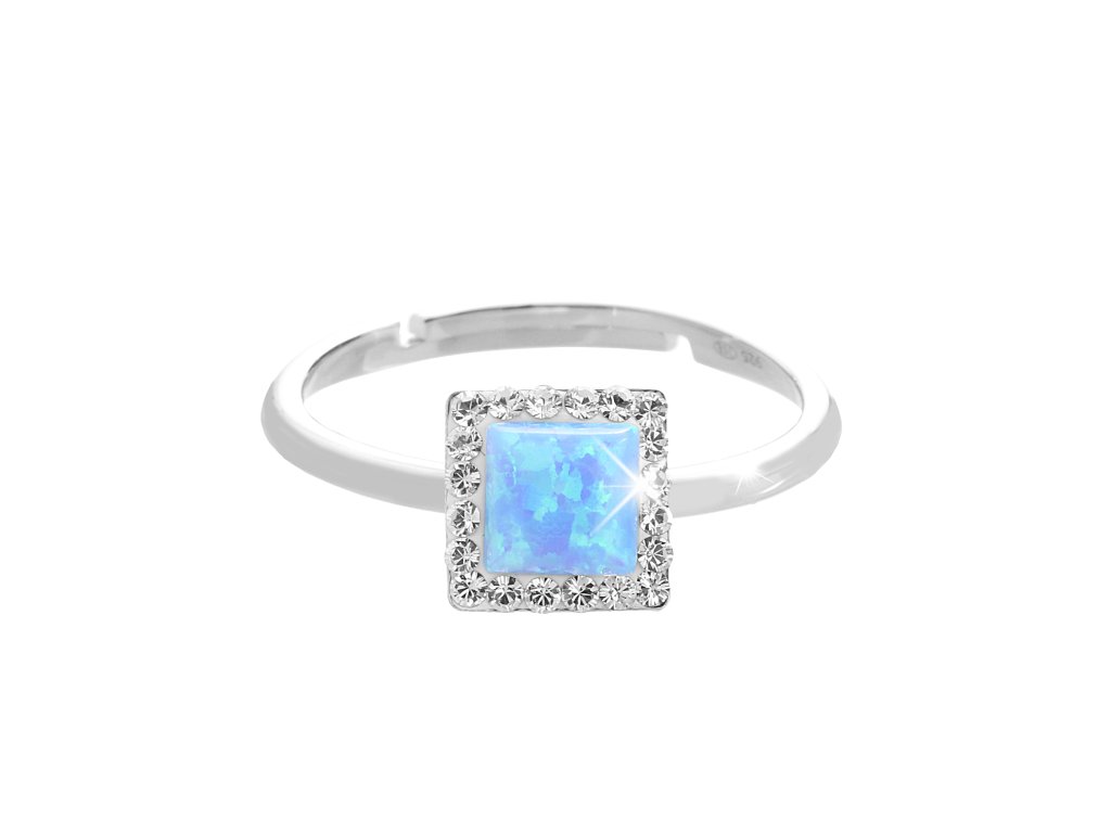 Stříbrný prsten s čtvercovým opálem a krystaly Swarovski Blue malý (Stříbro 925/1000)