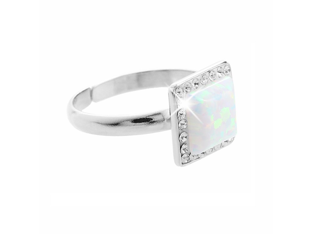 Stříbrný prsten s čtvercovým opálem a krystaly Swarovski White velký (Stříbro 925/1000)