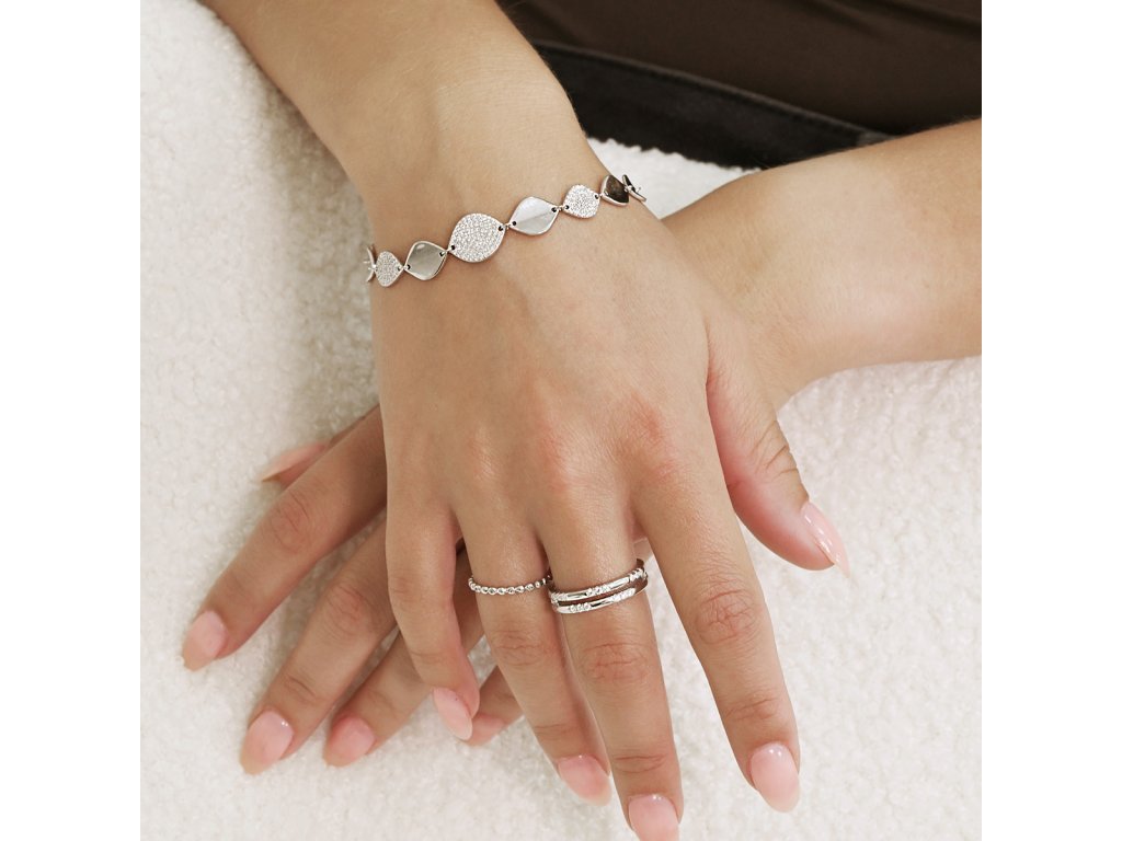 Šperk je vyroben ze stříbra ryzosti 925/1000. Na jeho povrchu je vrstva rhodia, která jej chrání před zčernáním a zajišťuje jeho dlouhotrvající lesk. Prsten je zdobený čirými krystalky a jeho stříbrný lesk v kombinaci s precizním brusem krystalu působí luxusně. Díky různým velikostem krásně sedne na každému – ideální pro každodenní nošení i speciální příležitosti.