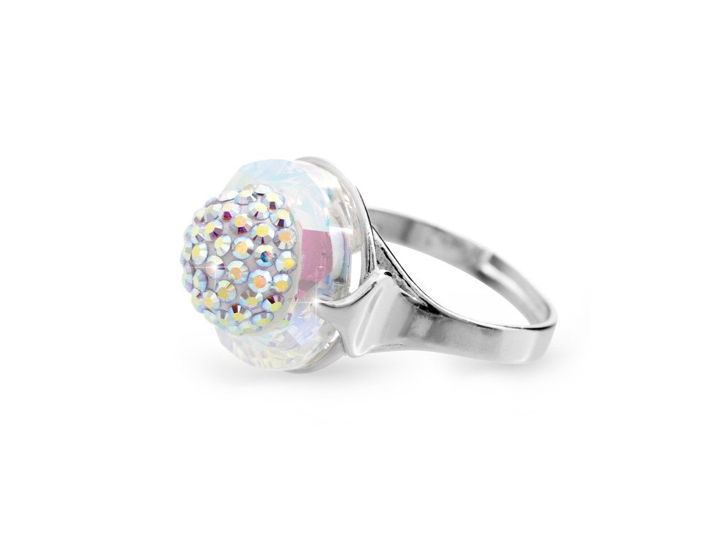 Stříbrný prsten s kruhovým krystalem a zdobeným středem krystaly Swarovski AB (Stříbro 925/1000)