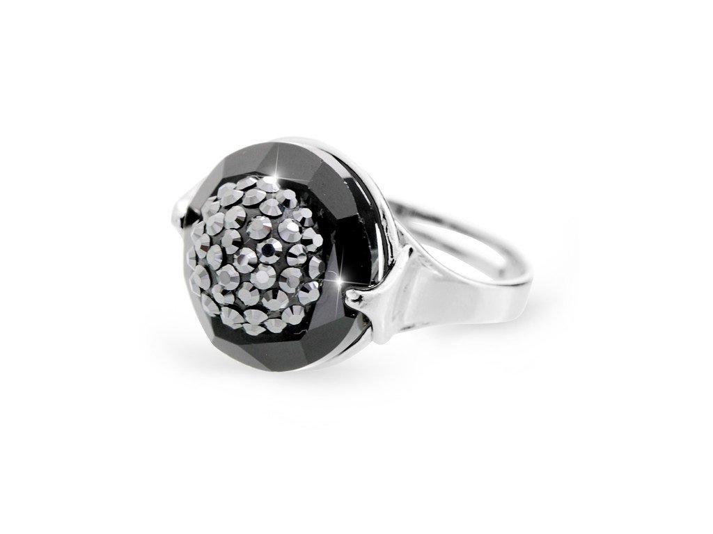 Stříbrný prsten s kruhovým krystalem a zdobeným středem krystaly Swarovski Hematit (Stříbro 925/1000)