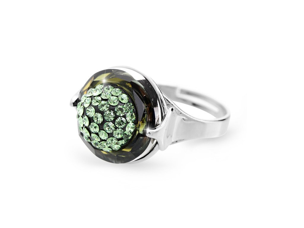 Stříbrný prsten s kruhovým krystalem a zdobeným středem krystaly Swarovski Peridot (Stříbro 925/1000)