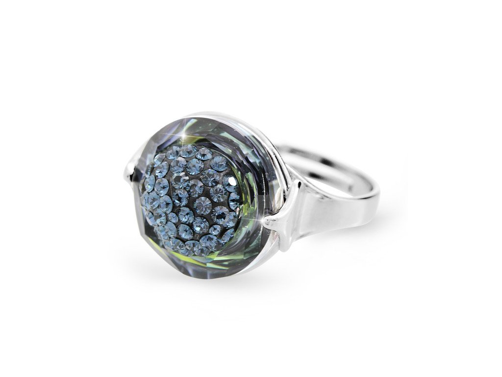 Stříbrný prsten s kruhovým krystalem a zdobeným středem krystaly Swarovski Sahara (Stříbro 925/1000)