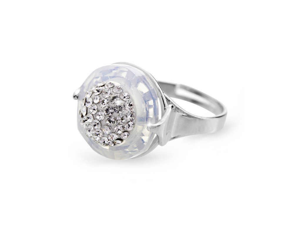 Stříbrný prsten s kruhovým krystalem a zdobeným středem krystaly Swarovski White Opal (Stříbro 925/1000)