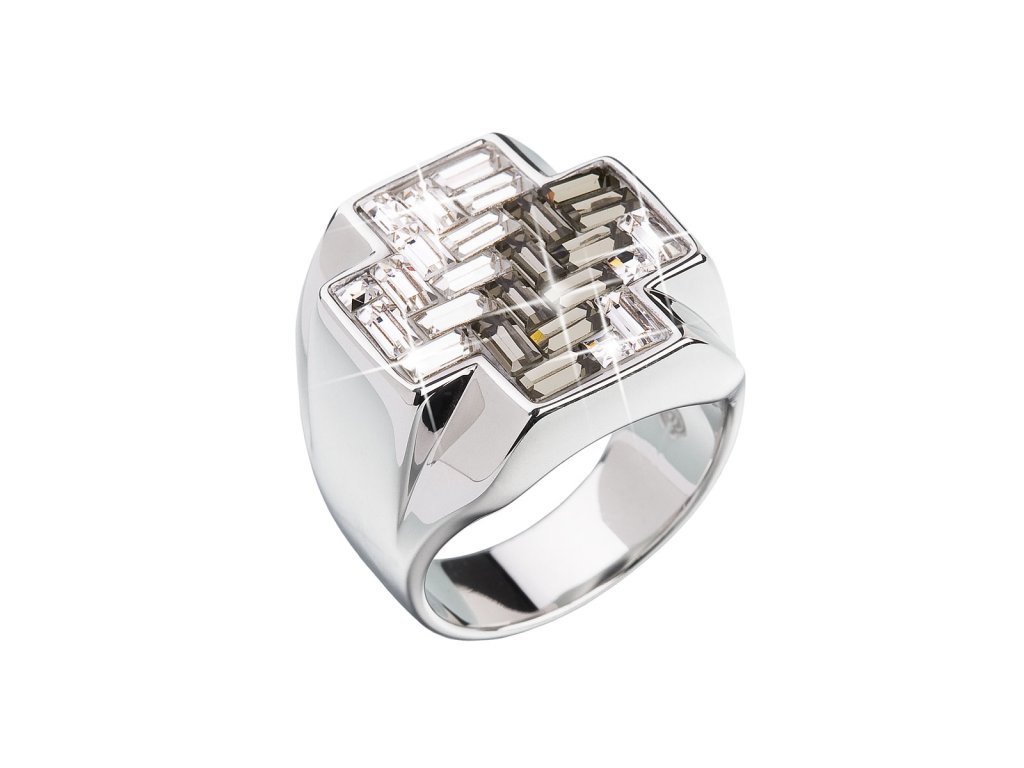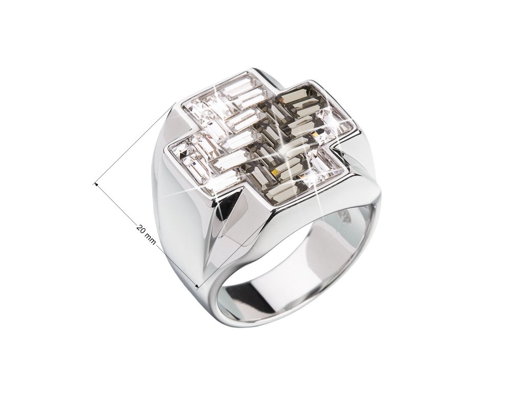 Stříbrný prsten s krystaly černý kříž 35811.3