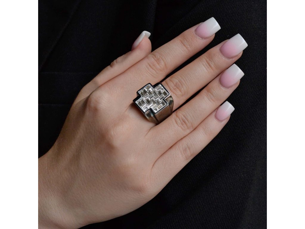 Parametry stříbrného prstenu s krystaly černý kříž 35811.3
