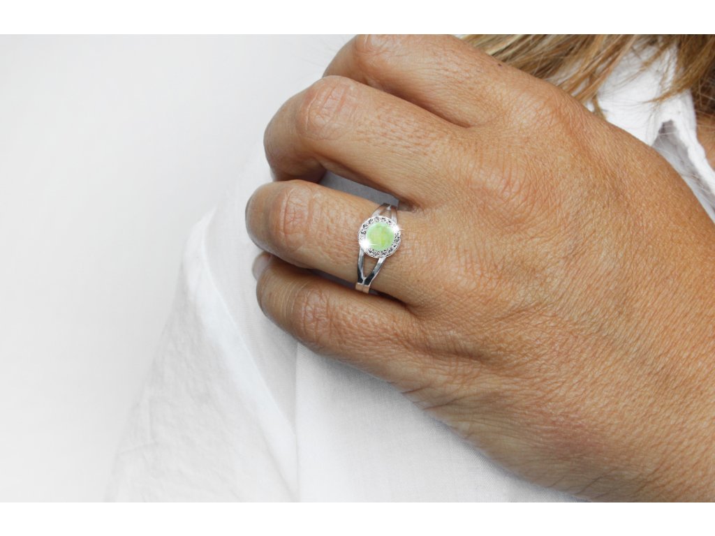Stříbrný prsten s kulatým opálem a krystaly Swarovski Green malý (Stříbro 925/1000)