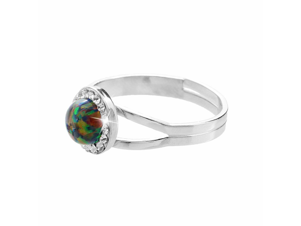 Stříbrný prsten s kulatým opálem a krystaly Swarovski Vitrail Medium malý (Stříbro 925/1000)