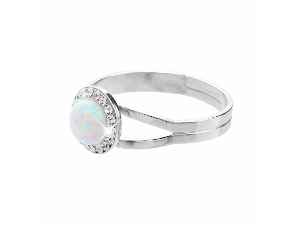 Stříbrný prsten s kulatým opálem a krystaly Swarovski White malý (Stříbro 925/1000)