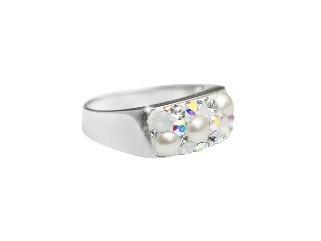 Stříbrný prsten s obdélníkovým lůžkem a krystaly Swarovski AB Mix (Stříbro 925/1000)